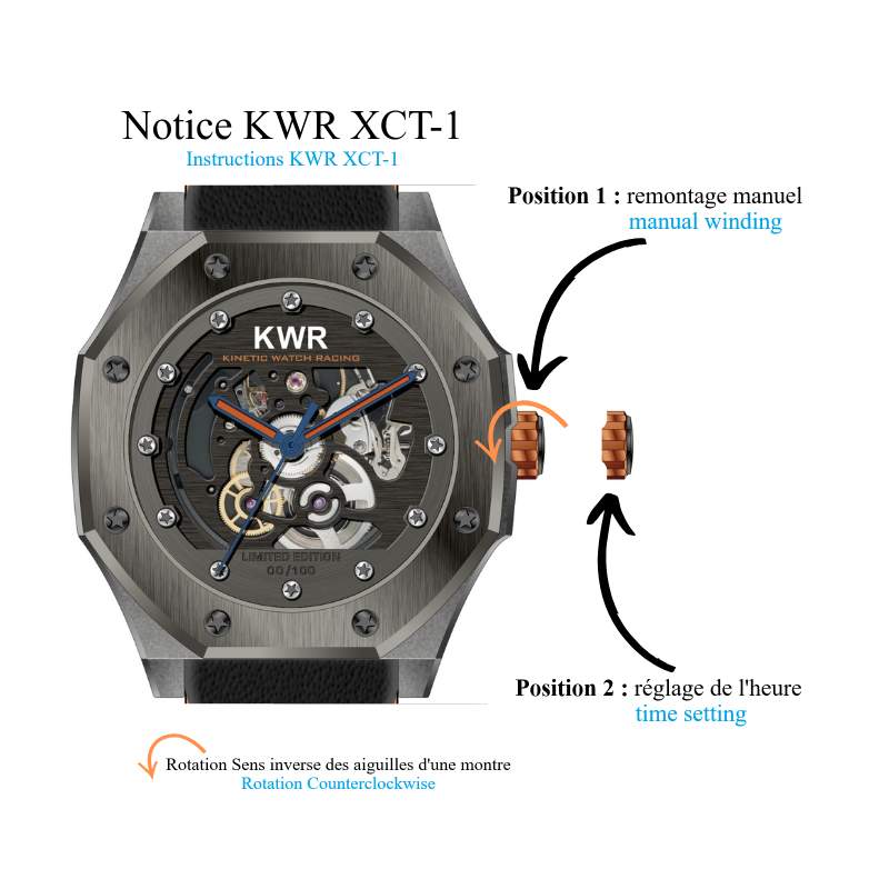 ⚠️ Important: To ensure the water resistance of the carbon case, always screw the crown back in fully after each use.